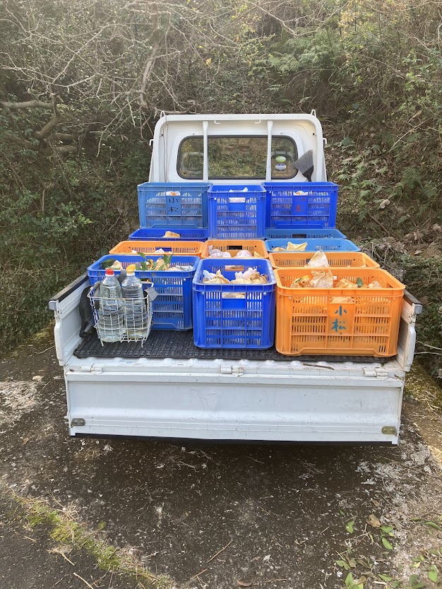 軽トラックで畑と倉庫を3往復しました。